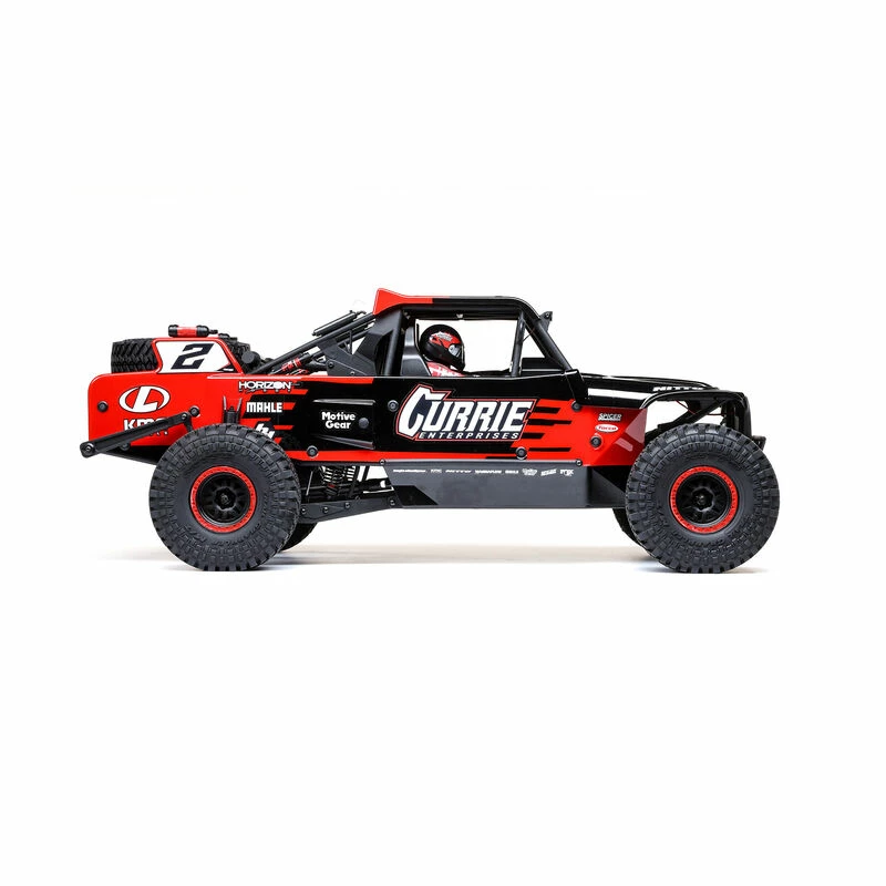 The Losi® Hammer Rey® is a SMART, Ready-to-Run Rock Racer with AVC®. It is officially licensed and based off Casey Currie’s U4 Racer. It’s powered with a Spektrum™ 3150Kv brushless motor and managed by the Smart 130A ESC, 6-channel DSMR AVC/telemetry receiver, and the new DX3 transmitter that provides Spektrum Smart feedback including live battery voltage. Along with the officially licensed design, the Hammer Rey includes KMC wheels, Nitto tires, and additional details such as new shock reservoirs, fire extinguishers, and new light bars. It comes equipped with a solid rear axle, independent front suspension, and oil-filled shocks, so you can tear across all types of rocky off-road terrain. And you’ll do so with the full-throttle freedom that only AVC® technology can provide. The Hammer Rey is ideal for victory-minded off-road enthusiasts looking for the top-of-the-line RC experience with the inclusion of AVC and the three-position limiting switch. With the Hammer Rey, Losi continues to push the limits when it comes to scale details, performance and officially licensed products.